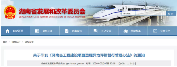 9月9日,湖南省發(fā)改委、省住建廳、省交通運(yùn)輸廳、省水利廳和省公共資源交易中心等5部門聯(lián)合發(fā)布《湖南省工程建設(shè)項(xiàng)目遠(yuǎn)程異地評(píng)標(biāo)暫行管理辦法》。